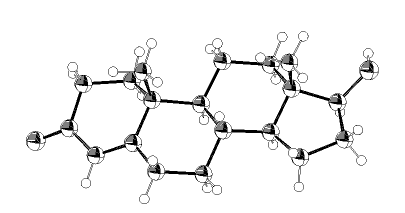The structure of the testosterone molecule and its derivatives has been determined by several groups. The data used in this page is from the crystallographic work reported in J. Chem. Soc., Perkin Trans. 2, (1973) p1978. The authors were P.J. Roberts, R.C. Pettersen, G.M. Sheldrick, N.W. Isaacs, and O. Kennard. |