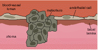 . Once inside the new organ, the metastatic cancer cell divides and forms a secondary tumor.