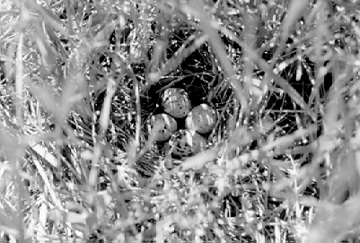 The vegetation in the ponds provides habitat necessary for the completion of the life history of some species, e.g., the dragonfly needing to expand and dry its wings before flying away after metamorphosis. The submergents provide a deep refuge of cool water in the summer for species that need to escape from the surface water heated up by sunlight.Energy flows from the algae and higher vegetation in a food web through microbial and animal links. We estimate that the snails in these ponds can process as much as 15% of the energy from the sun. Ducks, mergansers, herons, ibises, sandpipers, blackbirds, and many others depend on plant and other animals for food on their migrations and/or to raise their young in the ponds. | |