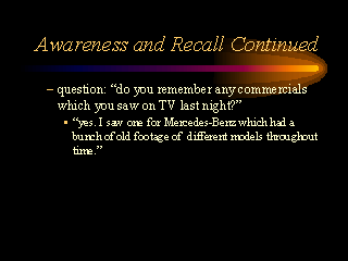 Awareness and Recall Continued