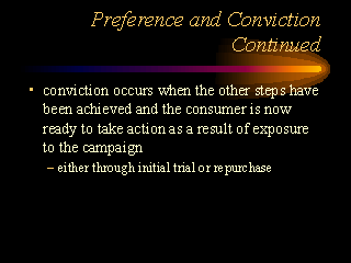conviction occurs when the other steps have been achieved and the consumer is now ready to take action as a result of exposure to the campaign