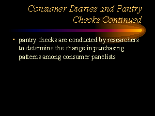 Consumer Diaries and Pantry Checks Continued