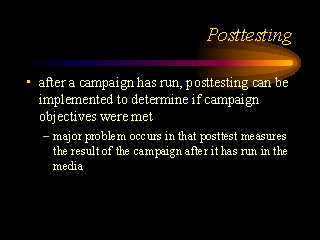 major problem occurs in that posttest measures the result of the campaign after it has run in the media