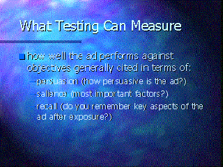 how well the ad performs against objectives generally cited in terms of: