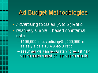 $100,000 in advertising/$1,000,000 in sales yields a 10% A-to-S ratio