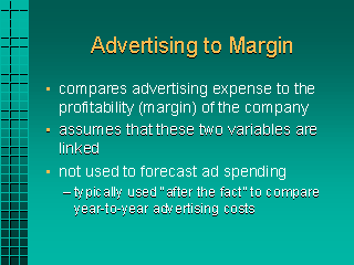 compares advertising expense to the profitability (margin) of the company