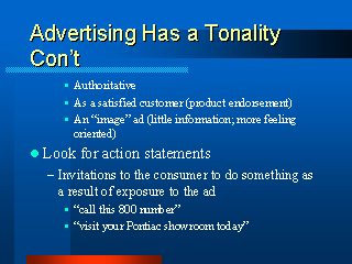 - Invitations to the consumer to do something as a result of exposure to the ad