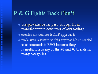 - trade was resistant to this approach but needed to accommodate P&G because