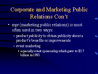 Corporate and Marketing Public Relations Con't