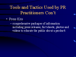comprehensive packages of information including press releases, fact sheets, photos and videos to educate the public about a product\